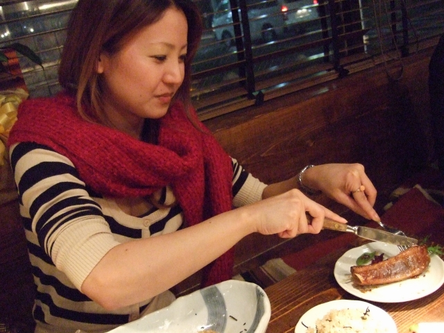 スペアリブと格闘するマリリンさん