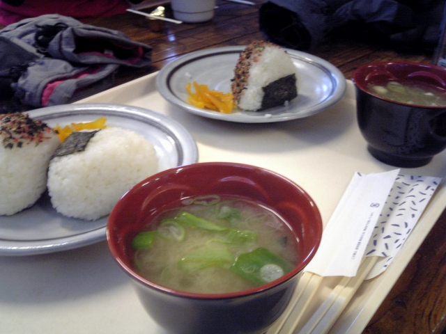 到着して、ヤスお勧めの『おにぎりセット』なるものを購入し食べようと試みるが、なぜか半分個しか食べれず…